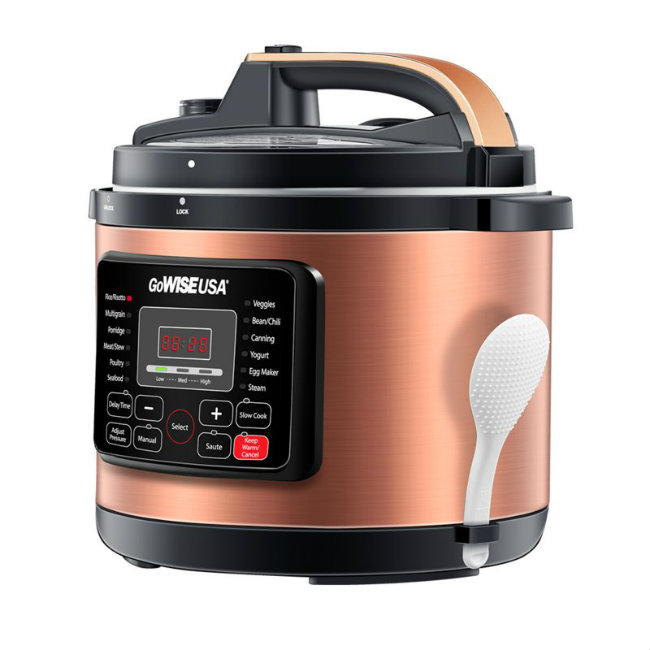 1 Lucky Win A GoWISE USA 12-in-1 Programmable Pressure Cooker In Stainless Steel Or Copper Finishes! RV $145