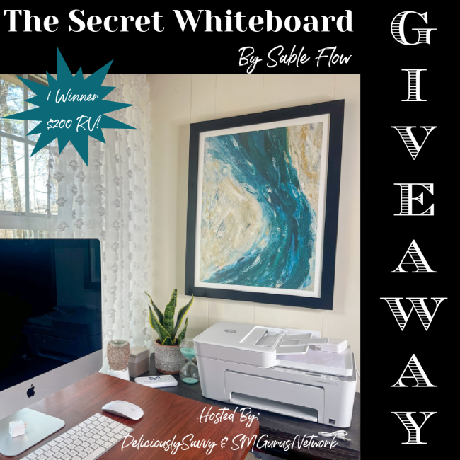 1 Lucky Winner Will Win A Medium Size #SecretWhiteboard from Sable Flow Valued at $200! Winner Choice of White Or Black Framed Secret Whiteboard!